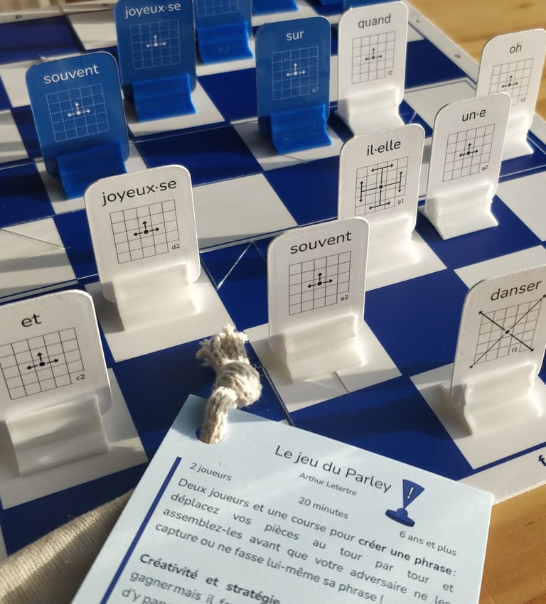 « What sets Parley apart is its inclusivity and versatility. Players of all ages and backgrounds can find joy in its simple yet profunds rules. Whether used as a tool for language learning, a training ground for strategic thinking, or simply a source of entertainment, this game leaves a lasting impression. »